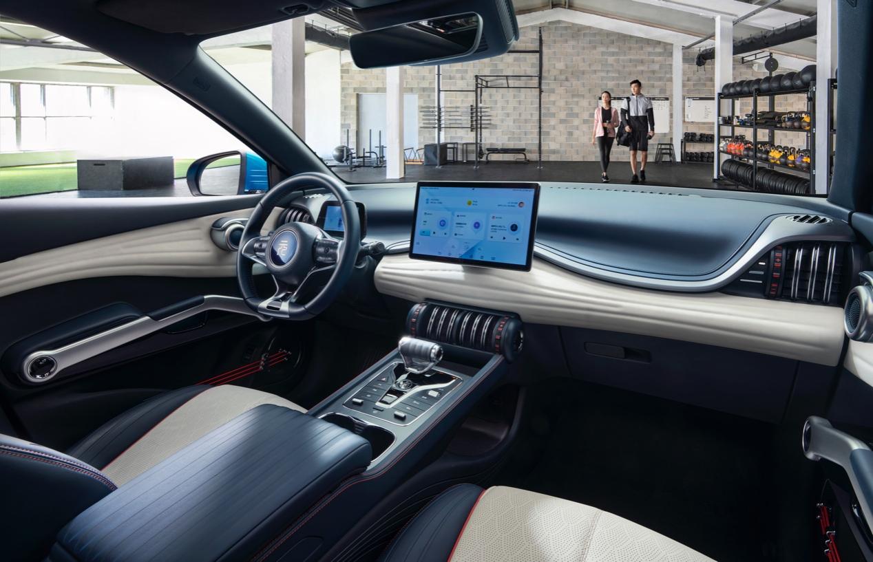 与潮跑外观比较,元PLUS内饰自带运动气场,由比亚迪全球内饰规划总监,米开勒· 帕加内蒂领衔打造,以荷尔蒙爆表的健身房为创意,是全球首款以运动健身理念打造的智能座舱,专为年青用户而来。
