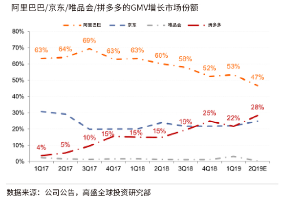 还在继续运用游戏场景和交际运营进步用户运用时长。高盛剖析以为,拼多多占有了2019年Q2电商渠道用户运用总时长的29%(Q1为25%,上一年度为22%)。结合渠道在618大促期间超越300%的GMV同比增幅,高盛猜测,拼多多在2019年Q2的GMV将同比上涨152%至2080亿元人民币,这一增加占电商职业GMV总增加的28%。拼多多GMV的商场份额占我国电商商场总份额的份额也将籍此上涨至9%。