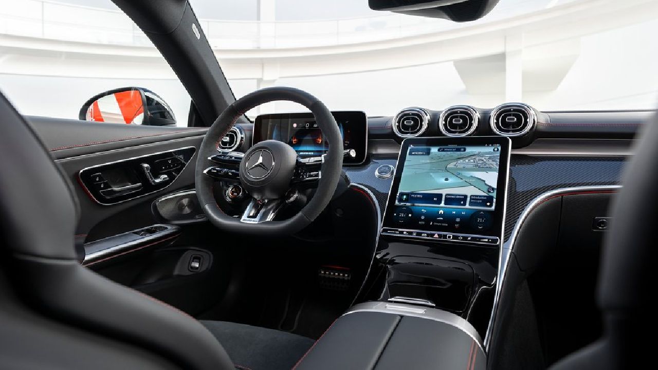 MBUX信息文娱体系是座舱布局的焦点。规范 CLE 中的一切功用也适用于 AMG 车型,包含 12.3 英寸数字驾驭员显示屏和 11.9 英寸中心触摸屏,现在配备了 AMG 专用图形。多项增强功用包含运动型座椅、AMG 方向盘以及 AMG 特有的装修和内饰选项。赤色比照缝线凸显了座椅的 Artico 人工皮革/黑色 Microcut 超细纤维内饰。纳帕皮革是可依据要求供给的附加选项。为了改进横向支撑,能够挑选 AMG Performance 座椅。