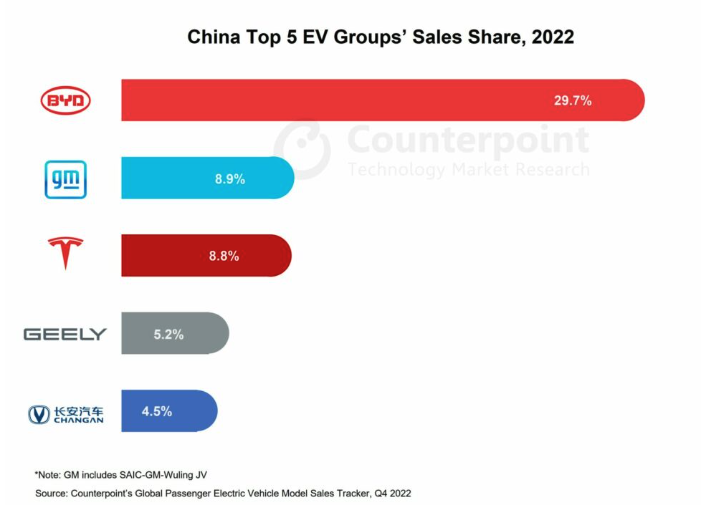 机构:2022 年中国售出的每四辆汽车中就有一辆是电动汽车,比亚迪表现出色